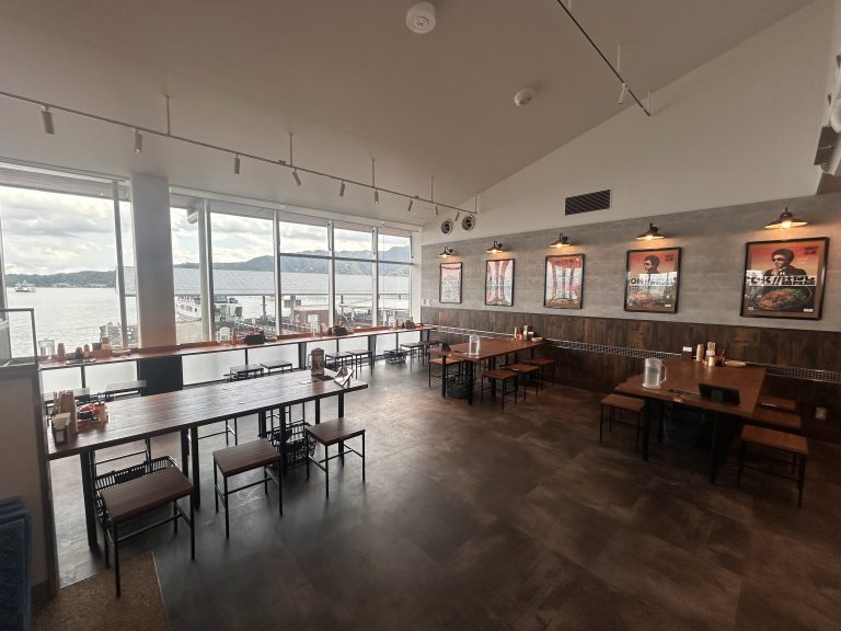 ちんちくりん宮島口店は宮島のフェリー乗り場の2階にあります。