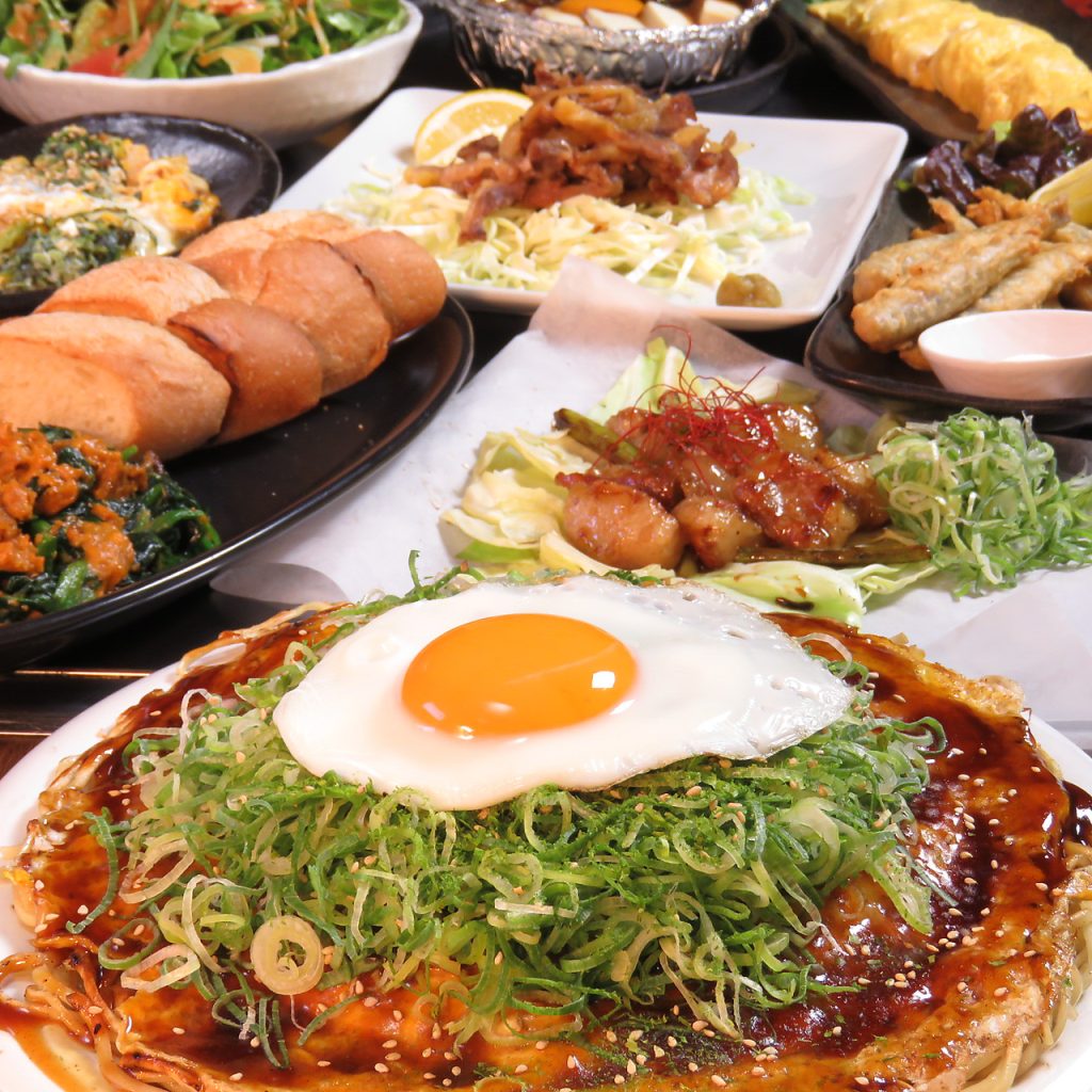 ちんちくりんお好み焼き・小鰯揚げ・コーネの塩焼き・牛ホルモンのタレ焼きなど人気のメニューを揃えたおすすめのコースです。