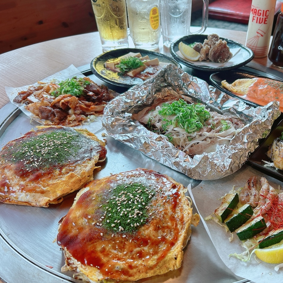 《歓送迎会にオススメ!》アルコール飲放付◎お好み焼きや人気の鉄板焼を含む満足コース全8品4,000円(税込)